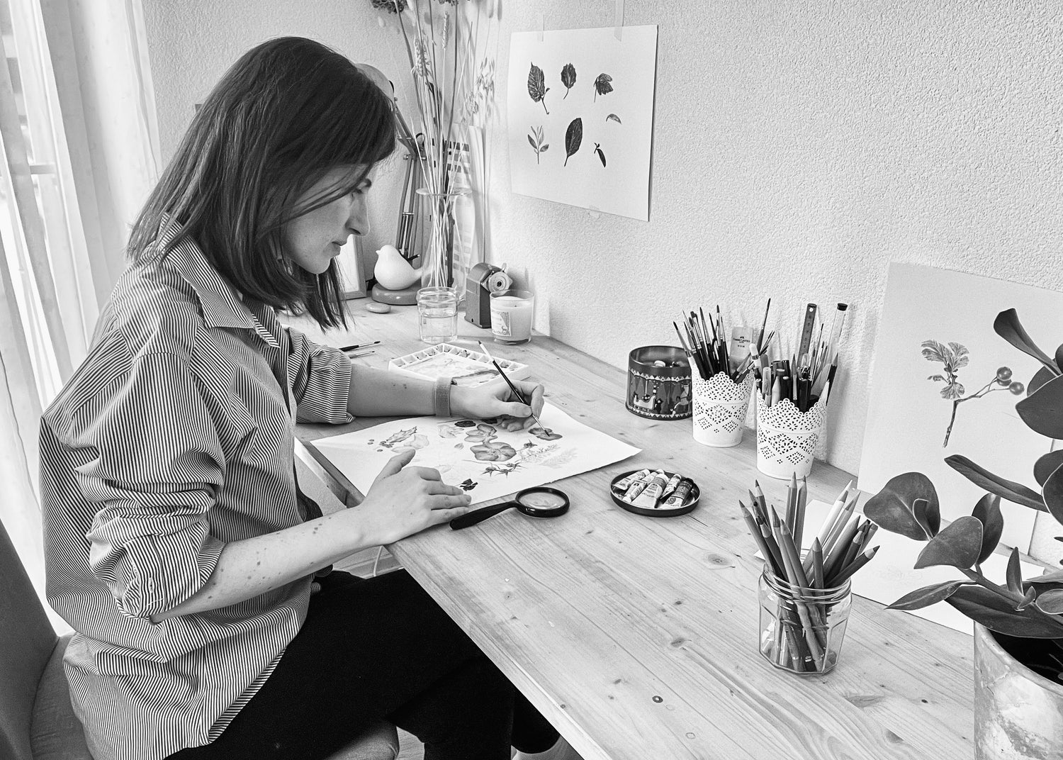 Je suis Sabrina Kaufmann, illustratrice botanique formée au graphisme et à la communication stratégique.